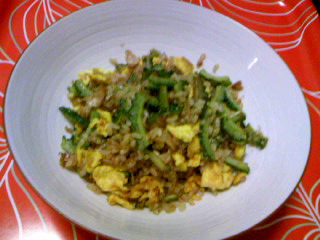 ちょっと苦みのある炒飯。いつもの炒飯に飽きたら、夏の食材で炒飯はいかがでしょうか?